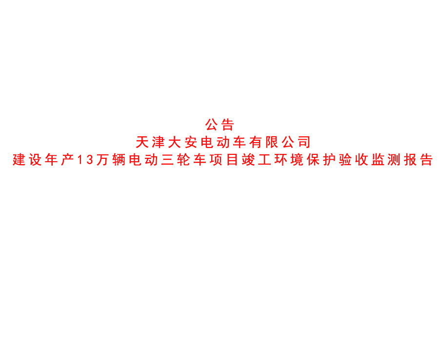 公司動態(tài) 天津大安電動車有限公司建設(shè)年產(chǎn)13萬輛電動三輪車項(xiàng)目竣工環(huán)境保護(hù)驗(yàn)收監(jiān)測報(bào)告
